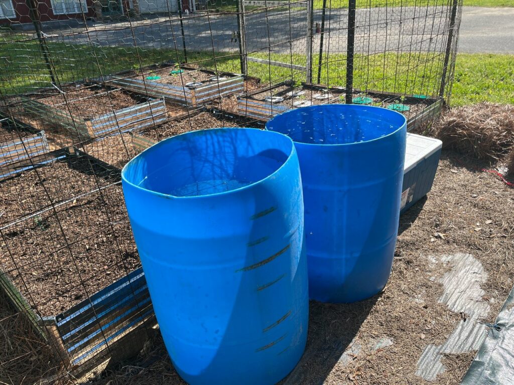 So I came up with a plan! I had some old water barrels that my Dad used for only god knows what that had been sitting upside down in the back for YEARS. So I decided to put them to good use!