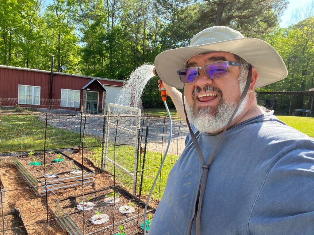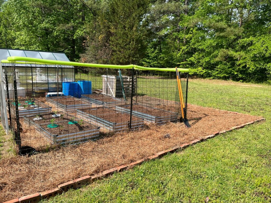 When I pulled the hose over the fence to water I realized that the wires were going to damage the hose. So I came up with a pretty fun plan and went to the Dollar Tree and bought a bunch of pool noodles to line the fence so that I won’t damage the hose, or my hands, haha. The pool noodle can also serve as a visual point so I can see the top part of the fence when I am zipping around it with my drone, helping to avoid it, lol. Because I have never crashed into the fence before… LOL…