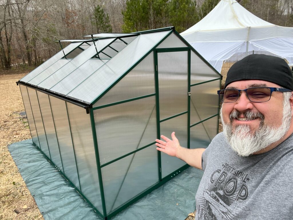 Once that was up, I got all of the inside bracing put up so it’s all tied together and seriously not going anywhere! This thing is real nice and sturdy! I am really excited about what this greenhouse is going to allow me to grow here on the homestead! Now to get all my cool GroLogic Solutions 3D printed hydroponics gear and self watering pots in here and growing! It’s time to get those early season seeds starting, and since I have this awesome space, I don’t have to worry about frost and such!